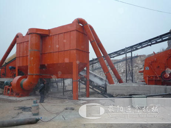 1.在機(jī)制沙生產(chǎn)線設(shè)備原有的基礎(chǔ)上配置除塵器裝置,安置在給料、出料口,捕獲粉塵,降低噪音分貝,顯著改善粉塵噪音污染